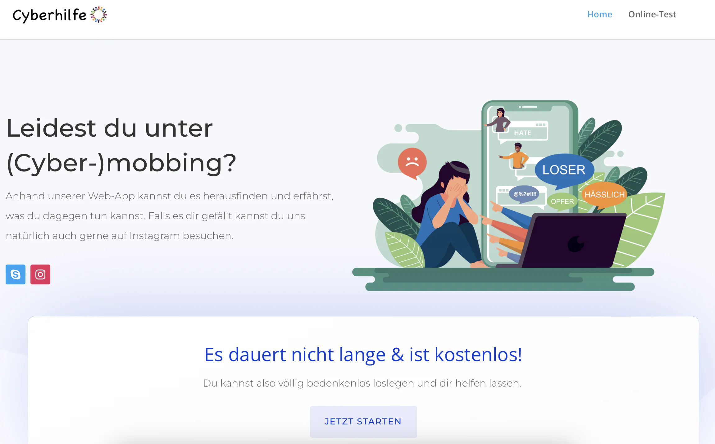 Cyberhilfe ist ein kostenloses Angebot für Schüler:innen, Lehrkräfte und Eltern bei einem Mobbingfall oder Mobbingverdacht.